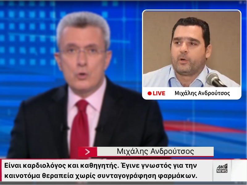 Ο Μιχάλης Ανδρούτσος είναι καρδιολόγος και καθηγητής. Έγινε γνωστός για την καινοτόμα θεραπεία χωρίς συνταγογράφηση φαρμάκων. Ακόμα και χωρίς φάρμακα, όλοι τους έγιναν καλύτερα. Μερικοί από τους ασθενείς του είναι διάσημοι άνθρωποι από όλα τα μήκη και πλάτη της γης, συμπεριλαμβανομένης, της Βόρειας και της Νότιας Αμερικής: τις ΗΠΑ, τη Βραζιλία, την Αργεντινή, το Περού και άλλα.